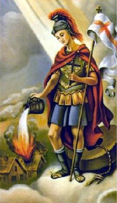 During the time of the Diocletianic Persecution of Christians, Rome received reports that Florian was not enforcing the persecutionof Christians in his territory and thus was sentenced to death by fire.. While standing on the funeral pyre, Florian is said to have challenged the Roman soldiers to light the fire by saying “if you do, I will climb to heaven on the flames”. Apprehensive to his words, instead of burning Florian, they drowned him. His body was later retrieved by Christians and buried at an Augustinian monastery near Lorch.